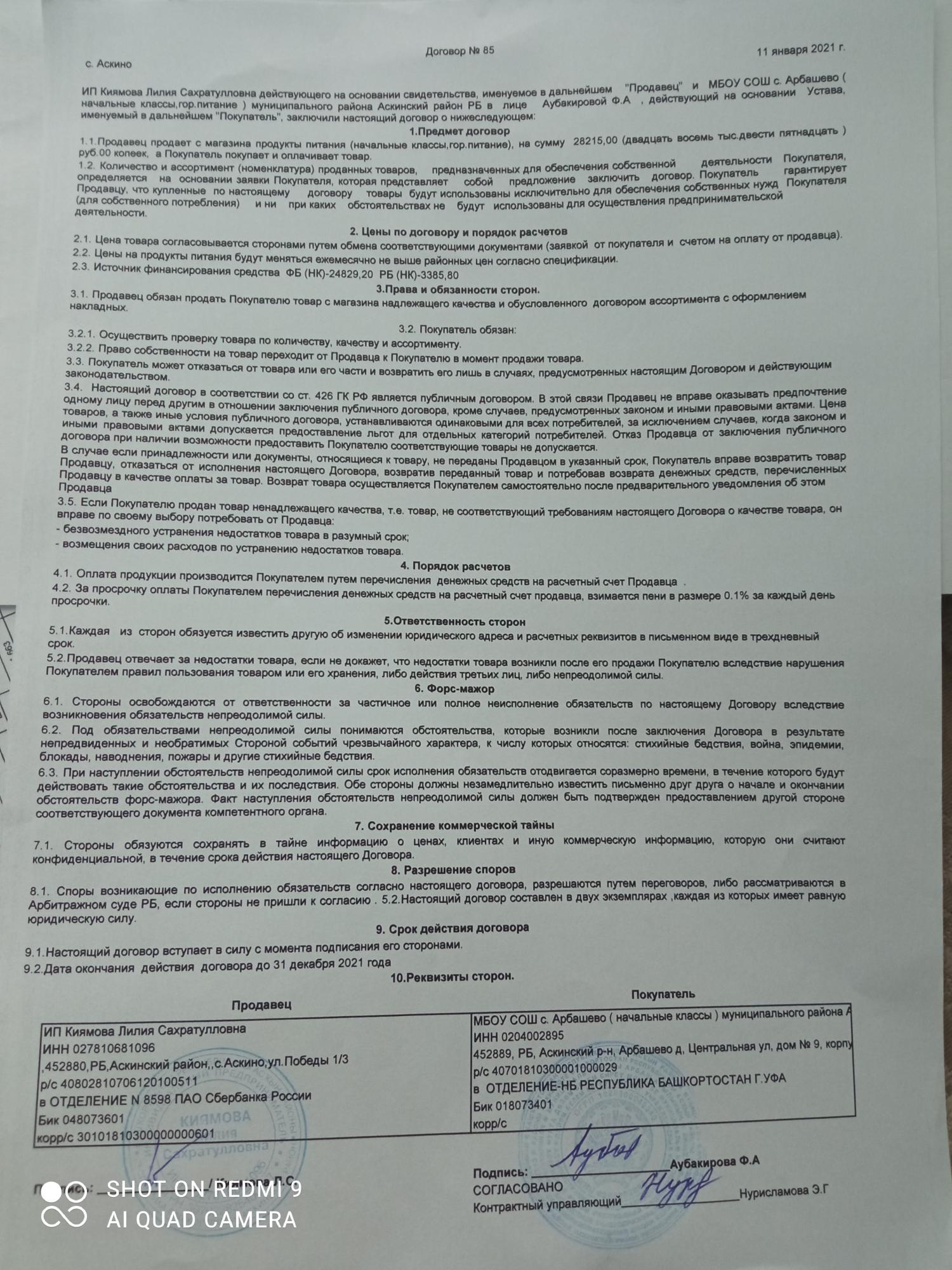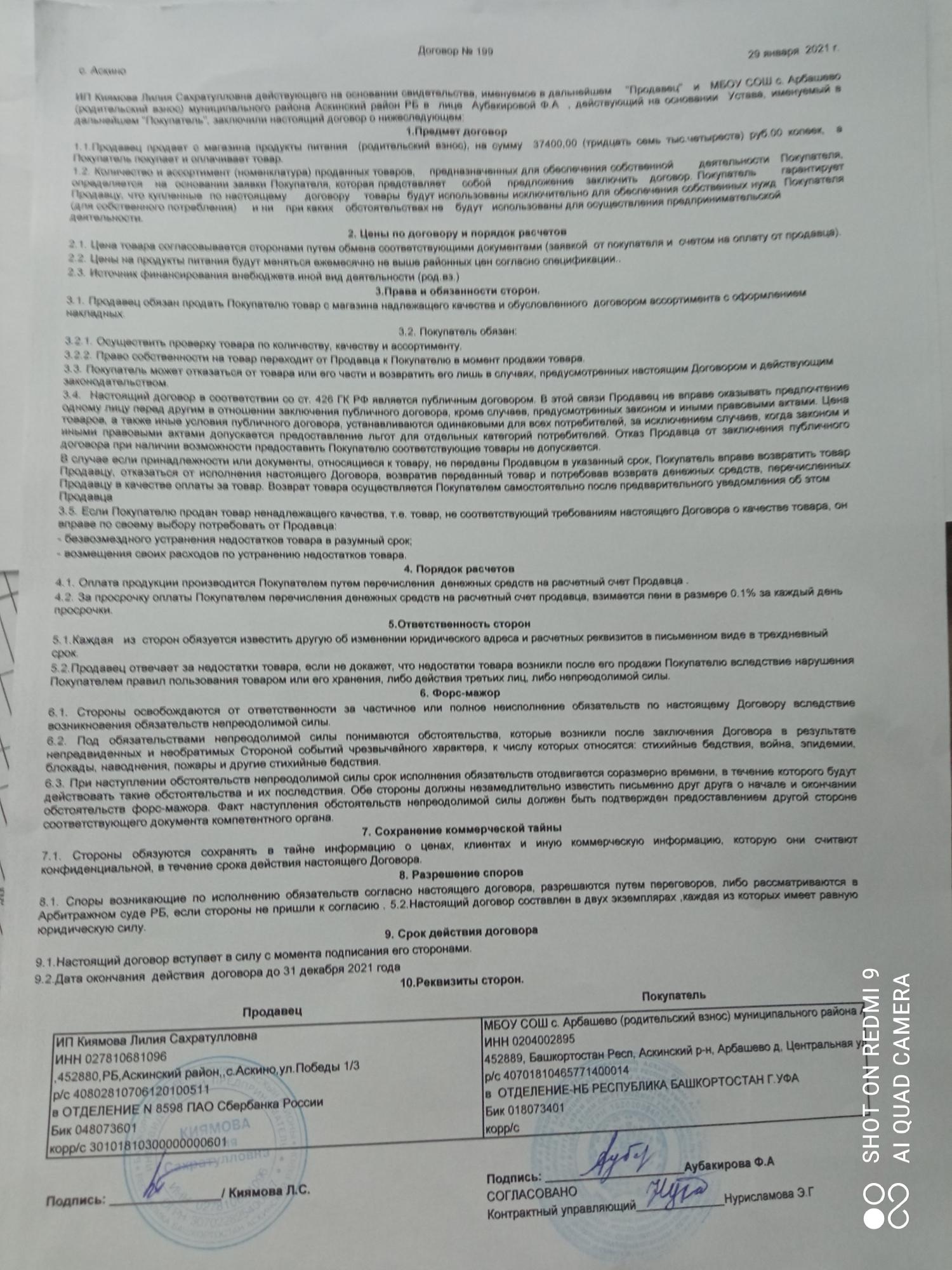 Договора поставки продуктов питания в МБОУ СОШ с. Арбашево представлены ниже